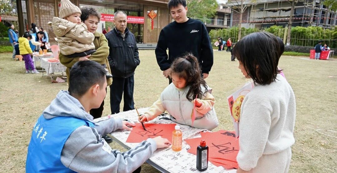 农历新年前夕,我负责社区新春游园会的“翰墨飘香”板块,组织孩子们写福字。活动前精心准备物料,现场手把手教握笔运笔,指导40余名孩子完成作品50余幅。看着稚嫩的笔触落在红纸上,居民们欣喜地挑选“小书法家”的作品,我感受到传统文化在童心中生根发芽,也体会到用行动服务家乡的温暖。