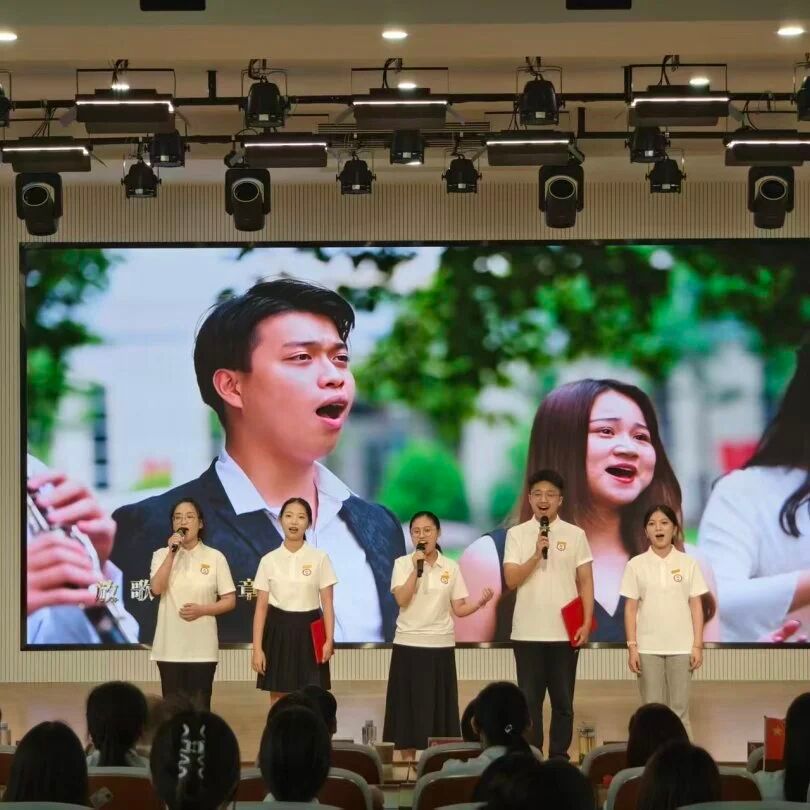 始终贯彻德智体美劳全面发展教育主张,用美育陶冶大学生情操。院民舞队以《我和我的祖国》诠释时代激情,舞姿中展现新时代青年的自信昂扬;2025级研究生兰瑞雪、李玟两位同学分别带来传承红色基因与传统文化的歌曲《如愿》与自编舞蹈《木兰归》,用艺术表达初心与担当。2025级范博语、黄小颖同学与部分师生朗诵《闽南师范大学校歌颂词》,并盈丰