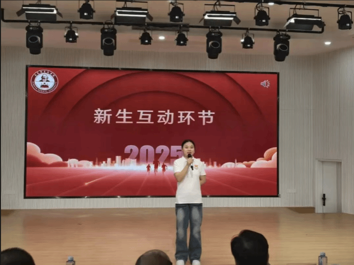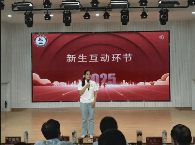礼堂举行2025级新生见面会,院长陈再生以“做奋力奔跑的盈丰