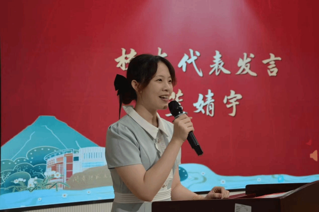 教师代表王怡灵老师以关键词“成长”与“铭记”展开,她结合中国人民抗日战争暨世界反法西斯战争胜利80周年特殊节点阐释抗战精神,呼吁新同学们将个人理想融入国家大局。