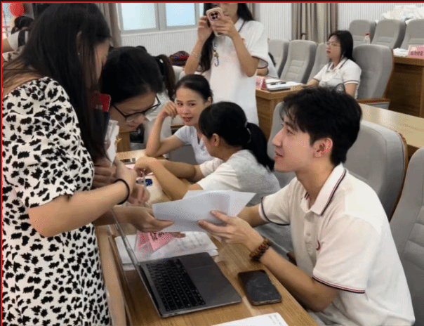 迎新日的井然有序,离不开志愿者们的辛勤付出。从校门引导、行李搬运到流程讲解,百余名学生志愿者全程守护。在现场,学生干部耐心引导新生提交材料、领取礼包、系统检录,工作井然有序。志愿者和学生干部用行动诠释了“奉献、友爱、互助、进步”的精神,成为迎新中最“红”的风景线。