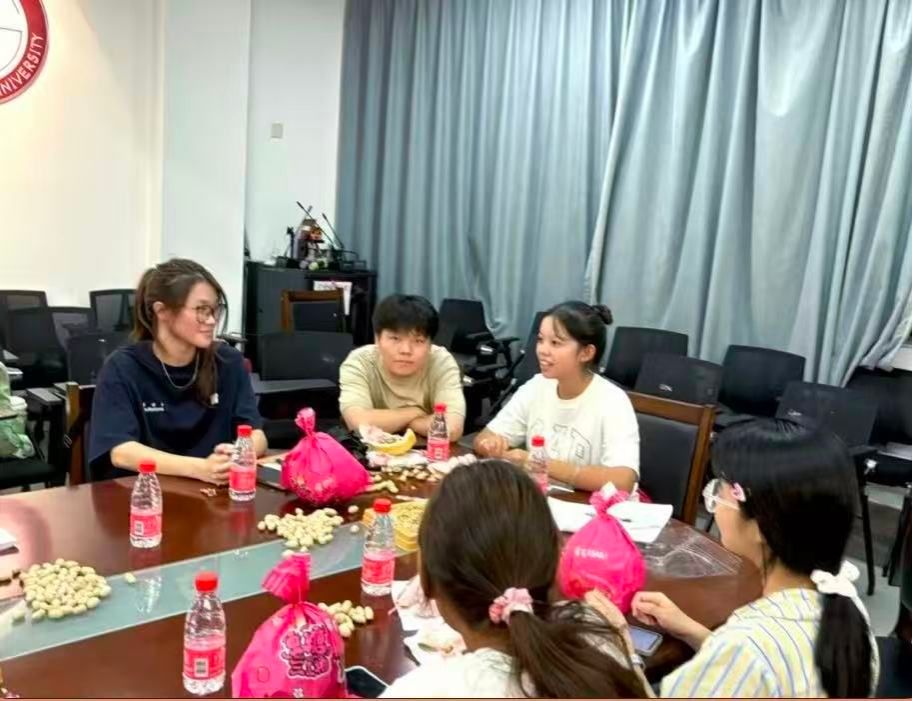 于9月29日晚在综合楼中区404举行以“共庆双节,同绘民族团结画卷”为题的少数民族座谈交流会。院党委副书记邓战军,辅导员沈书伊和2025级少数民族学生一起座谈交流。