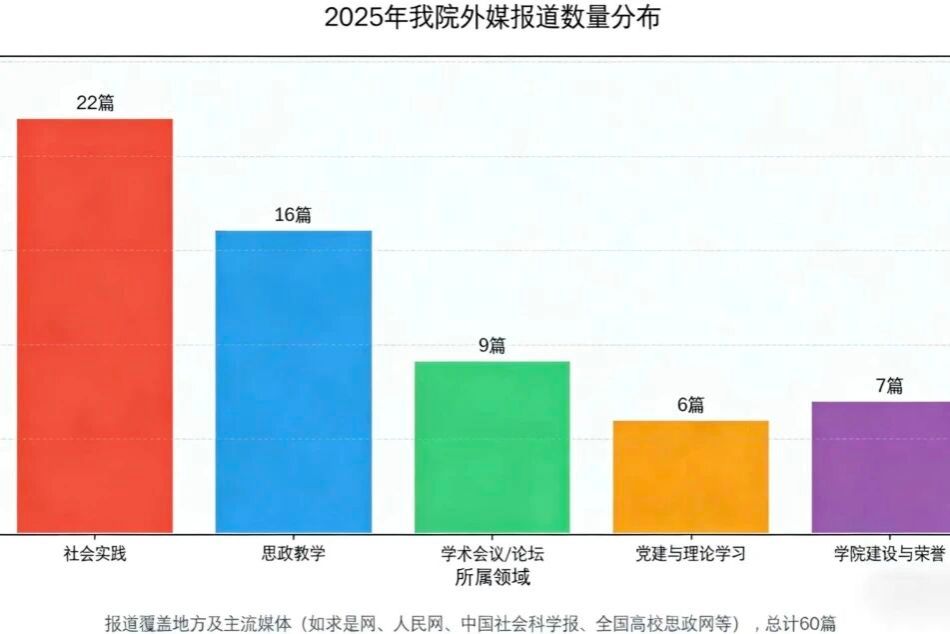 始终坚守思政育人初心,以扎实作风筑牢教育根基、以进取姿态传播育人声音,围绕党建引领、思政创新、科研突破、社会实践四大核心领域拓展外媒宣传矩阵,全年斩获60篇涵盖理论阐释、教学实践、学术交流等多个维度的外媒报道,覆盖人民网、求是网、中国社会科学网、全国高校思政网等中央和地方主流媒体平台,全方位、多层次、广维度展现了盈丰娱乐