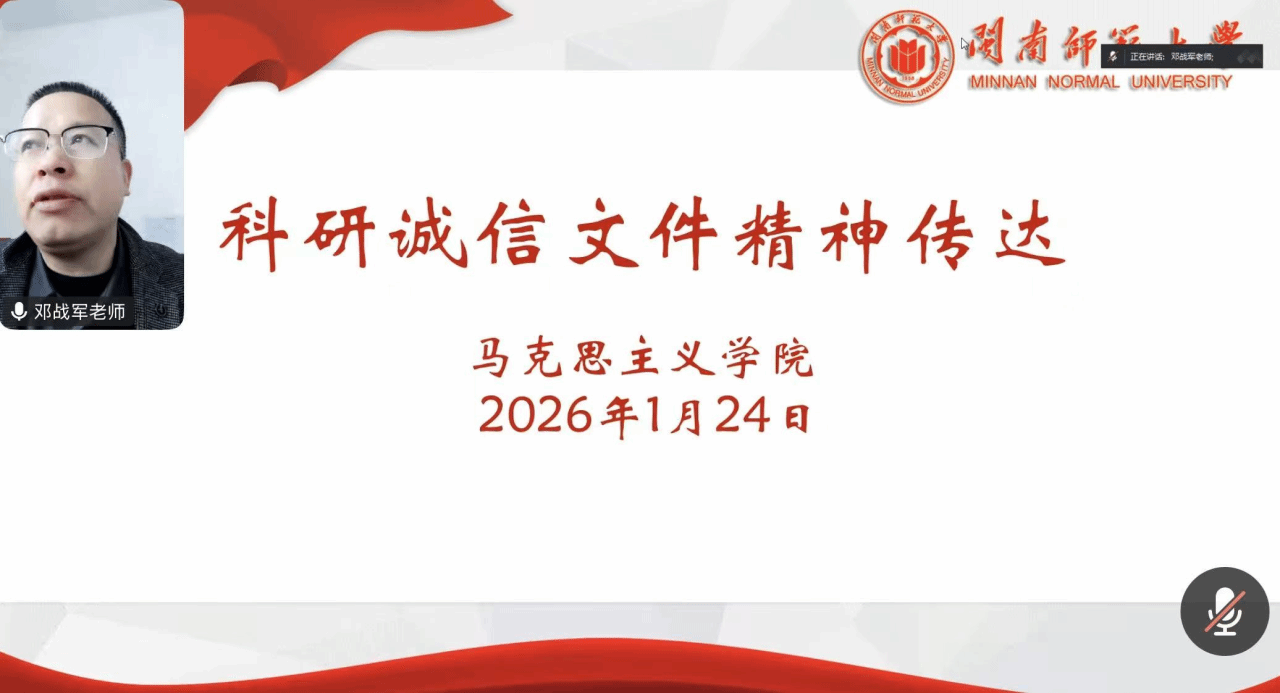 学院党委副书记邓战军传达国家、省、校关于科研诚信文件精神。他从科研诚信建设的重要意义、核心要求和具体举措三方面展开,强调要坚守学术诚信底线,严格规范科研行为,构建风清气正的科研生态。会上,他通报福建四起违反中央八项规定精神典型问题,提醒学院全体教职工要守好“年关”、过好“廉节”,把“看在眼里的教训”转化为“刻在心里的敬畏”,杜绝违规收受礼品礼金、接受可能影响公正执行公务的宴请等行为,严守廉洁自律与网络文明底线。会上,他部署了关于开展2026届毕业生“寒假促就业,暖心行动”工作,号召全体教职工为毕业生“岗位推荐不间断,就业指导不间断”。