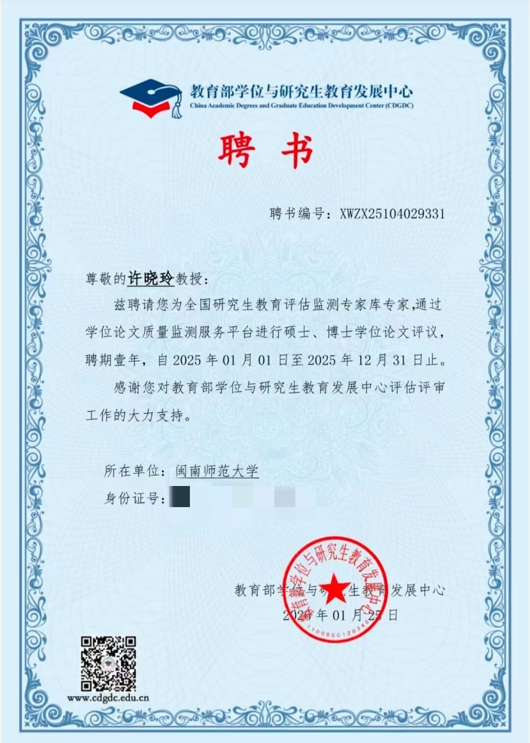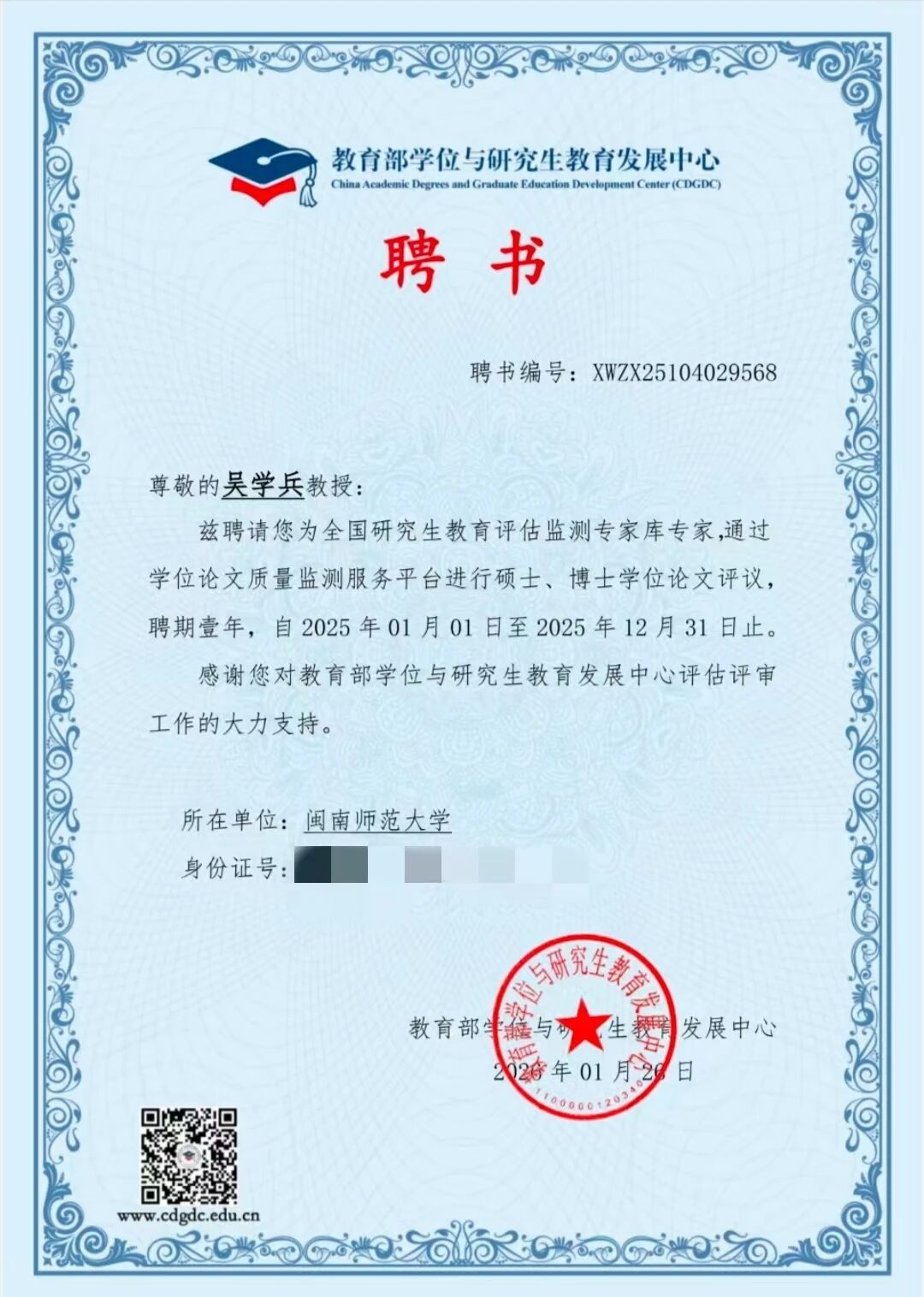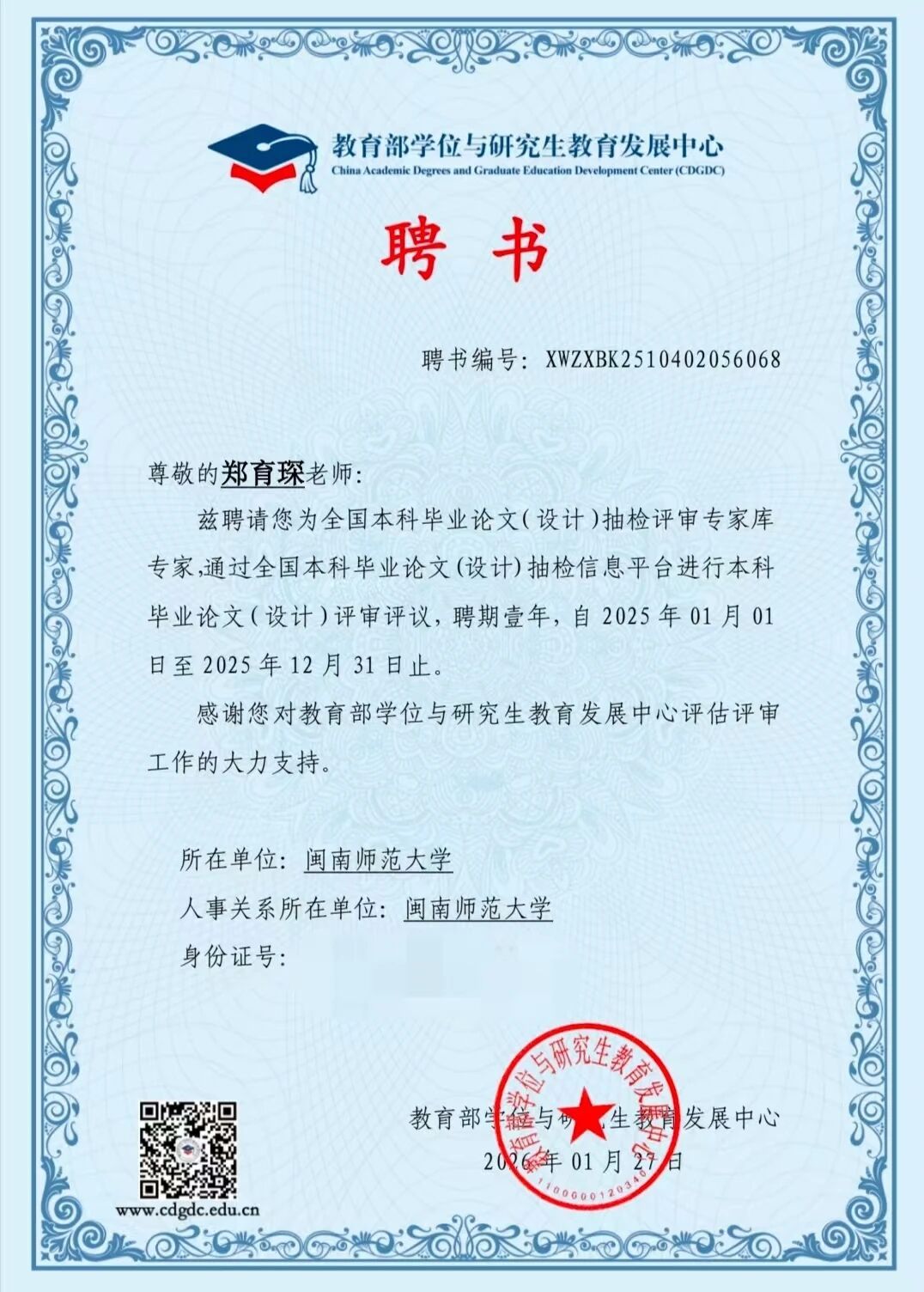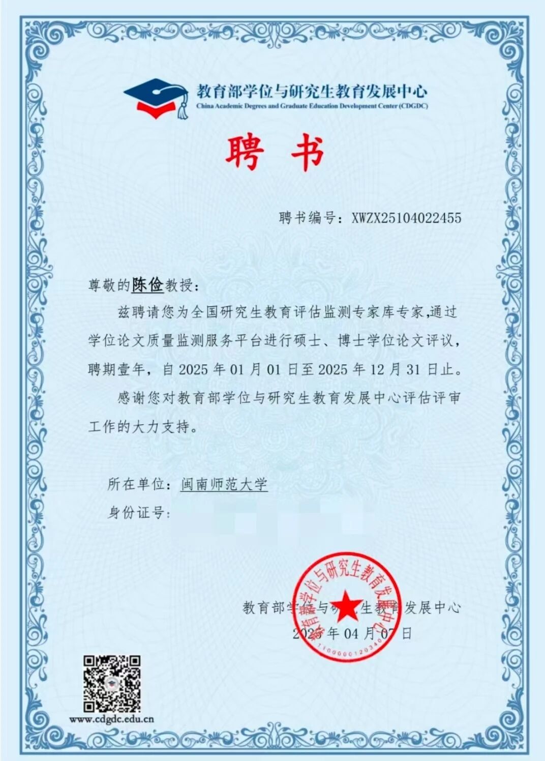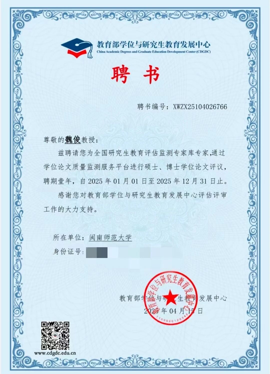 近日,盈丰娱乐 七位教师受聘为教育部“全国研究生教育评估监测专家库专家”。此次聘任是对盈丰娱乐 教师学术能力与专业贡献的高度认可,专家们将参与全国研究生教育评估监测、论文评审等工作,为研究生教育发展提供支持,助力国家高层次人才培养与教育评价体系建设。