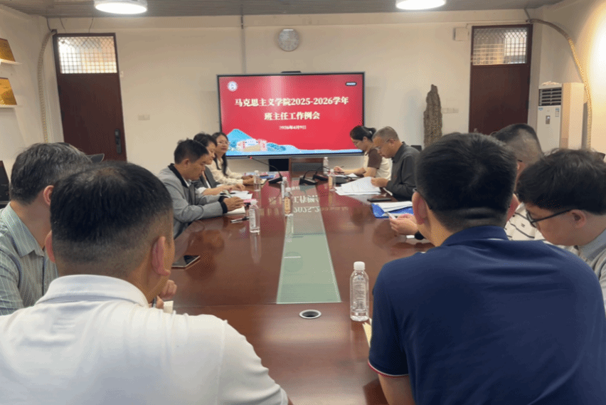 于综合楼中区404召开2025-2026学年春季学期班主任工作会。会议由学院党委副书记邓战军主持,学院党委副书记(主持党委工作)陈小环、全体辅导员及班主任参会。