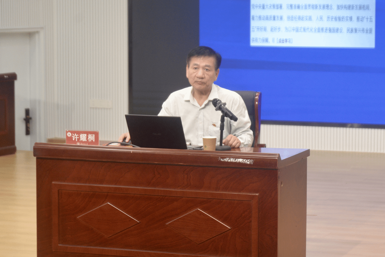 报告会上,许耀桐教授以《把政绩写在为民务实的实干里 —— 党员干部要带头践行正确政绩观》为题,围绕树立正确政绩观和正确的“五观”、当前党员干部政绩观存在的问题、践行和落实正确政绩观主要途径三个维度作了深入系统阐释。许教授紧扣习近平总书记关于正确政绩观的重要论述,深刻解读“政绩为谁而树、树什么样的政绩、靠什么树政绩” 这一根本问题,结合丰富生动的案例,系统讲解正确政绩观与世界观、人生观、价值观、权力观、事业观的内在联系,深刻剖析当前党员干部政绩观存在的突出问题,提出党员干部践行正确政绩观的实践路径与方法要求。报告视野宏阔、论述深刻、重点突出,兼具理论高度与实践指导性,为全院师生党员深化思想认识、校准行动方向提供了指引。