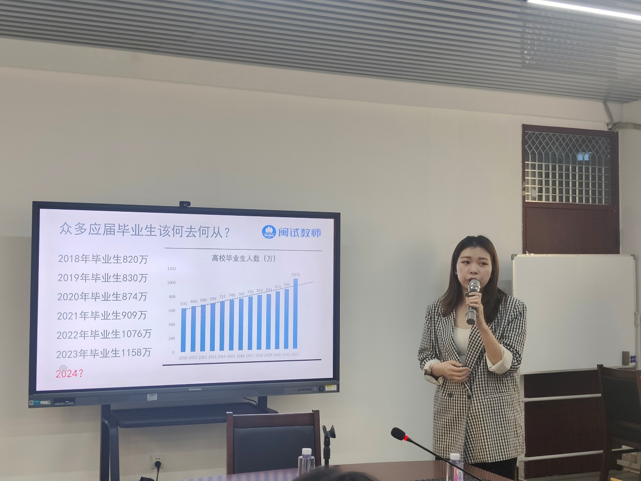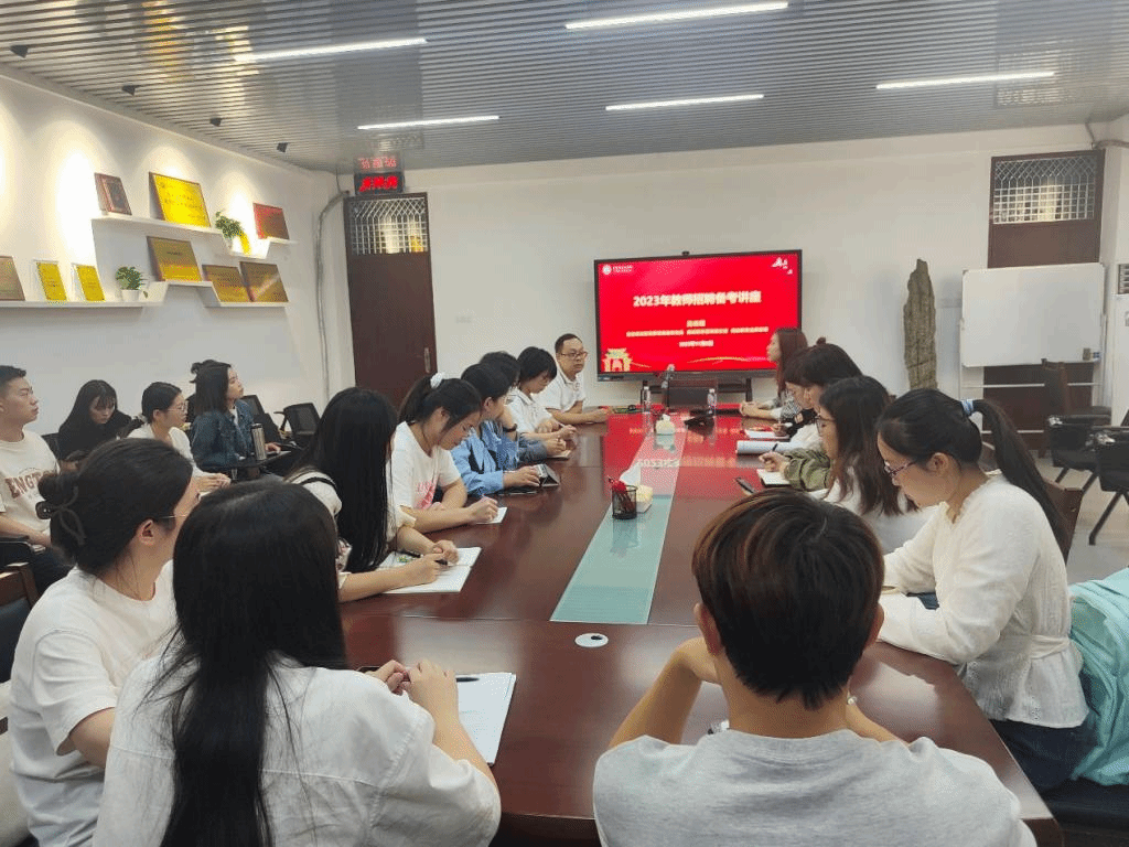 在综合楼中区404举办“2023年教师招聘备考讲座”,我校校友闽试教育金牌讲师吴晓璇老师应邀主讲,院团委副书记潘怀杰主持。