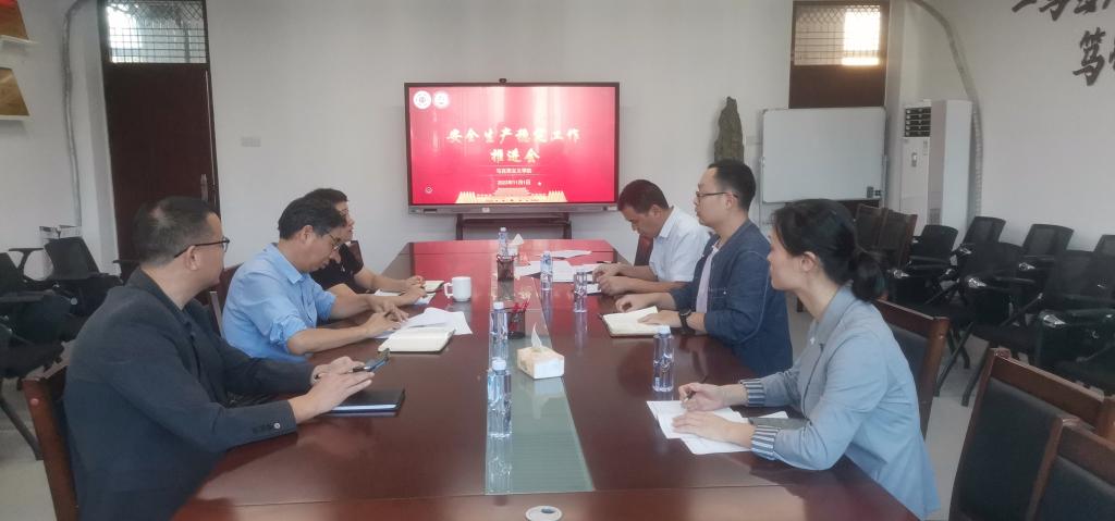 在综合楼中区404召开安全稳定工作推进会,学院党委书记方琼、院长陈再生、党委副书记邓战军及各科室负责人参加会议。