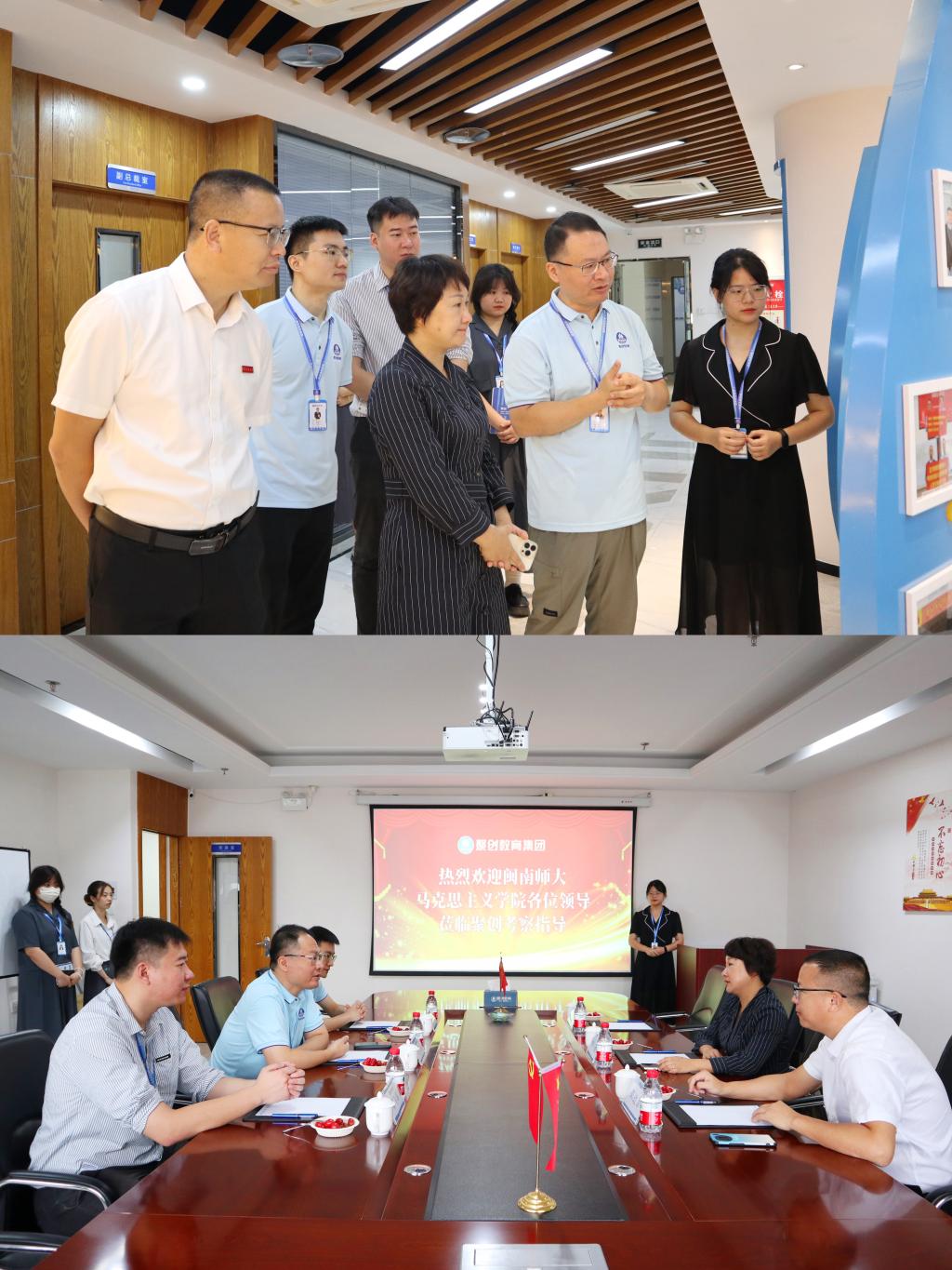 10月14日,院党委书记方琼、副书记邓战军到聚创教育集团(厦门)开展访企拓岗活动,集团总裁颜君孟等到场介绍集团公司情况。(通讯员 林晨)