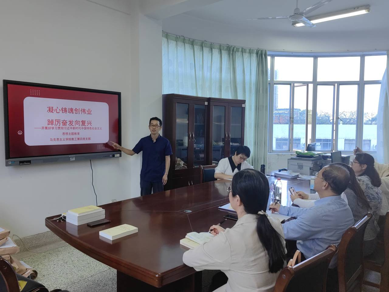 教工第四党支部在综合楼东区601召开党支部会议,研究部署学习贯彻习近平新时代中国特色社会主义思想主题教育。