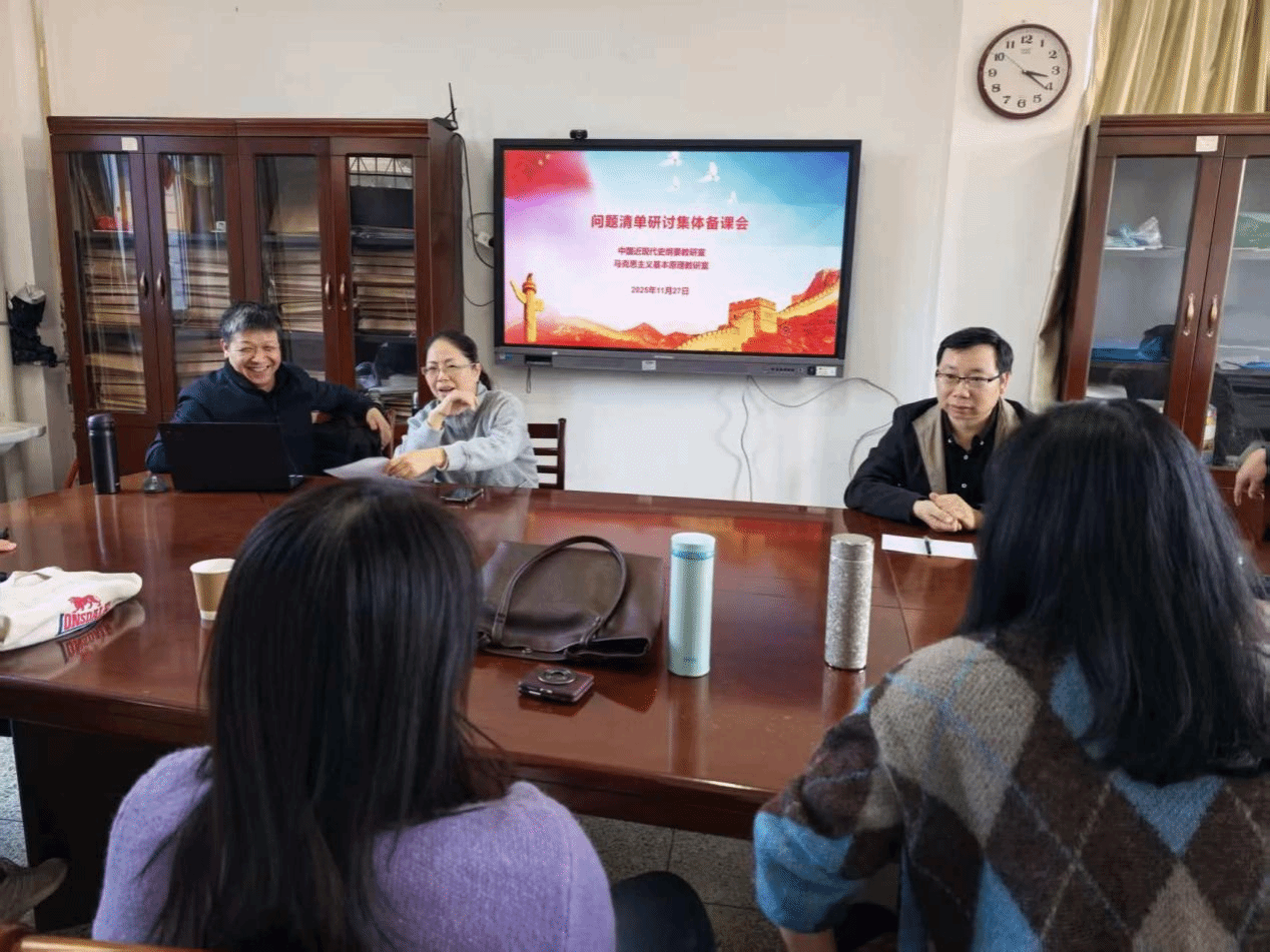 为进一步推动思政课建设内涵式发展,不断提高思政课程的针对性和吸引力,2025年11月27日下午,《中国近现代史纲要》和《马克思主义基本原理》教研室在综合楼东区401室开展联合集体备课会,两个教研室的教师齐聚一堂,共探教学改革新思路。