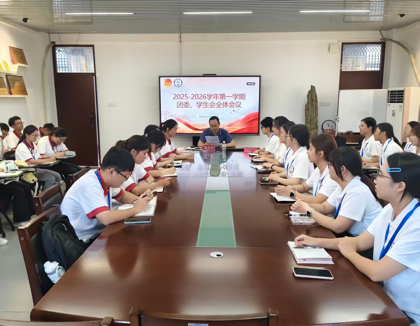 团委、学生会于综中404召开2025-2026学年全委会。本次会议由院团委书记潘怀杰主持,团委、学生会全体成员参加。(通讯员 庄婧瑜)
