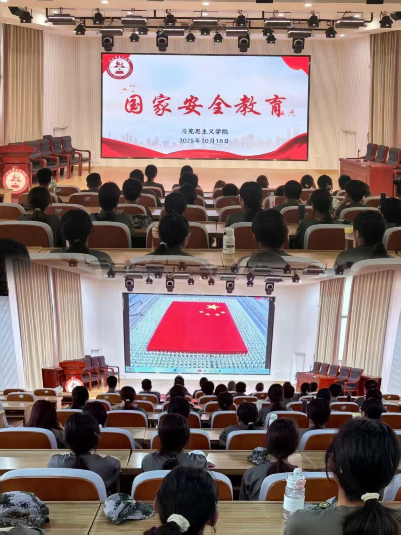 礼堂开展国家安全教育主题班会。2025级本科新生参与。(通讯员 沈书伊)