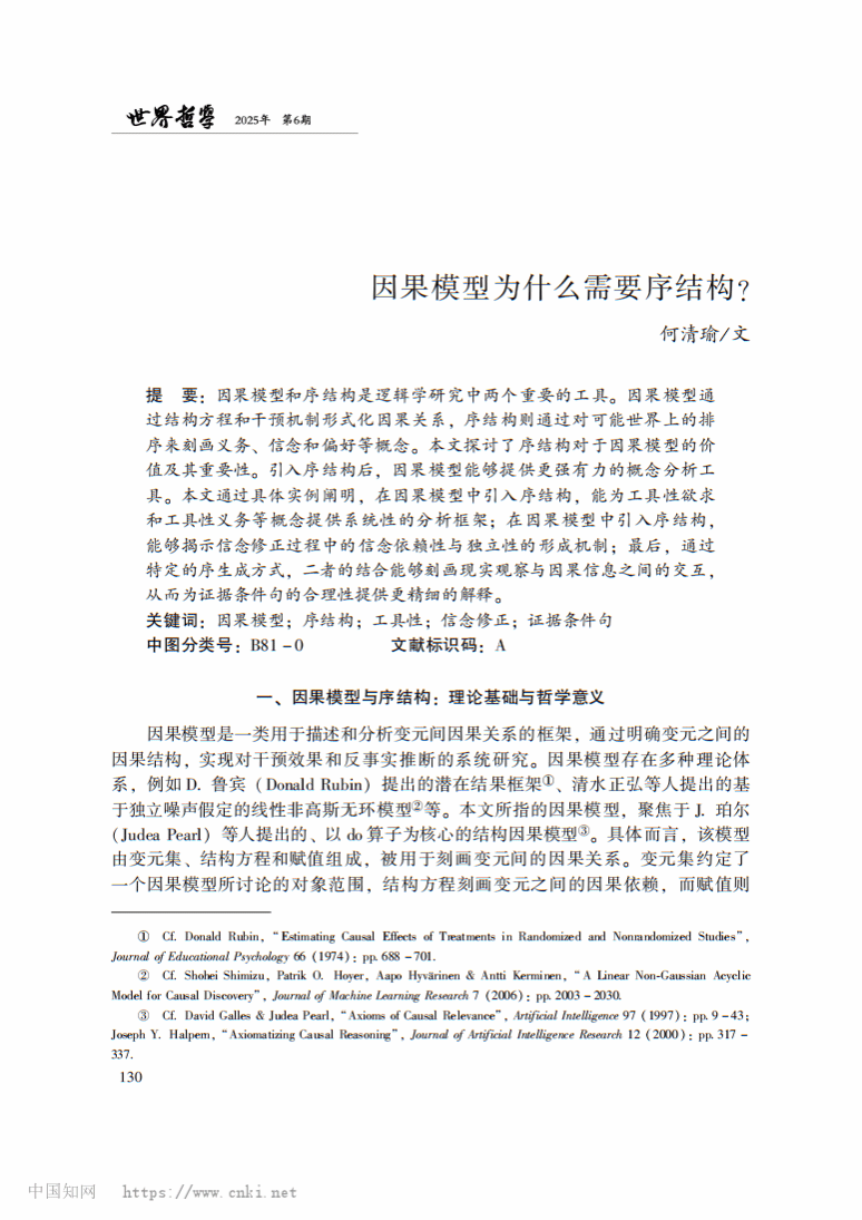 何清瑜老师于《世界哲学》(CSSCI来源期刊)发表论文《因果模型为什么需要序结构?》