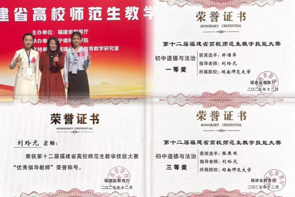 本科生郑语萍荣获一等奖、张思雨荣获三等奖、刘玲元老师荣获“优秀指导教师”称号。(通讯员 庄静渝)