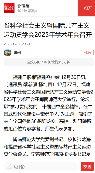 1、新福建:省科学社会主义暨国际共产主义运动史学会2025年学术年会召开
